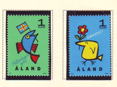 Aland Finland Scott Catalogue number 120-121 1996 Greetings stamp set .Mint, fine to very fine original gum never hinged.Member Canadian Stamp Dealers Association .Canadian Customers - I pay the GST/HST on your purchases from me .