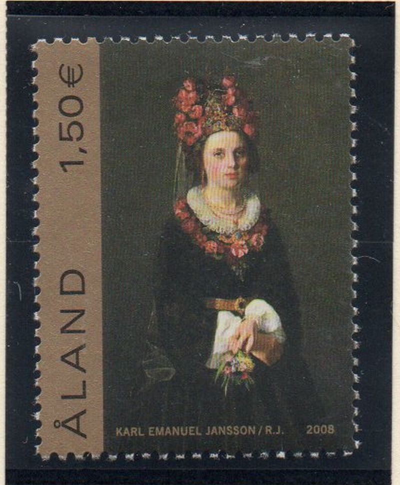 Aland Finland Scott Catalogue number 279 2008 Peasant Bride Painting by Jansson stamp .Mint, fine to very fine original gum never hinged.Member Canadian Stamp Dealers Association .Canadian Customers - I pay the GST/HST on your purchases from me .