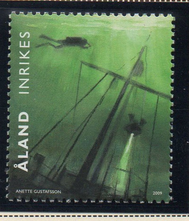 Aland Finland Scott Catalogue number 286 2009 Divers at Plus SHipwreck stamp .Mint, fine to very fine original gum never hinged.Member Canadian Stamp Dealers Association .Canadian Customers - I pay the GST/HST on your purchases from me .