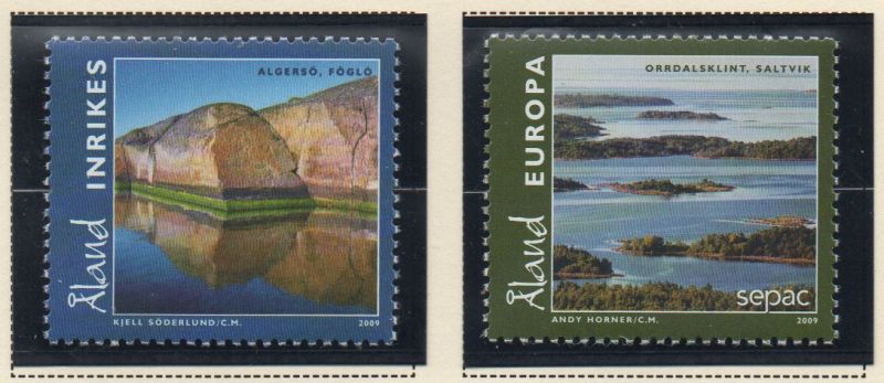Aland Finland Scott Catalogue number 291-292 2009 Cliff & Islets stamp set .Mint, fine to very fine original gum never hinged.Member Canadian Stamp Dealers Association .Canadian Customers - I pay the GST/HST on your purchases from me .