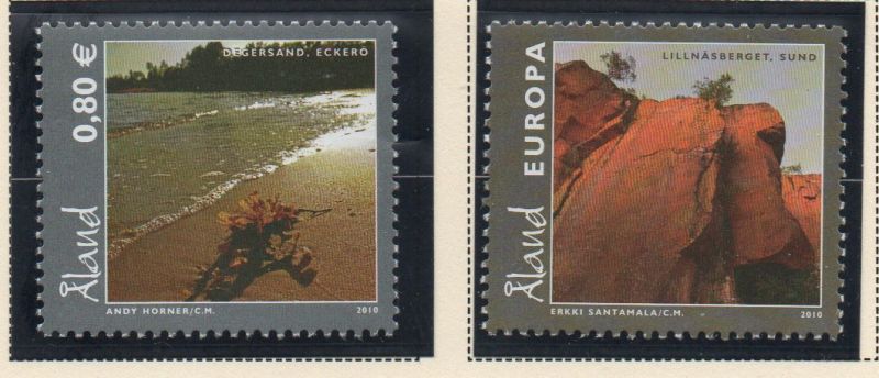 Aland Finland Scott Catalogue number 308-309 2010 Shoreline & Cliffs stamp set .Mint, fine to very fine original gum never hinged.Member Canadian Stamp Dealers Association .Canadian Customers - I pay the GST/HST on your purchases from me .