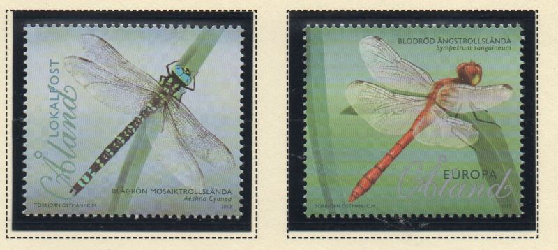 Aland ( Finland ) Scott Catalogue number 332-333 2012 Dragonflies stamp set .Mint, fine to very fine, original gum never hinged.Member Canadian Stamp Dealers Association .