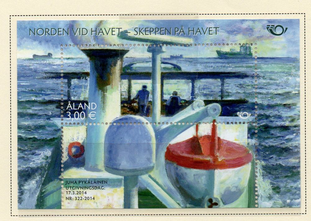 Aland ( Finland ) Scott Catalogue number 354 2014 Bridge & Freighter and ships on horizon stamp souvenir sheet