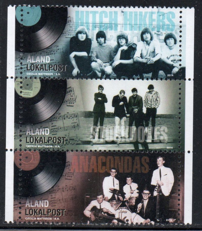 Aland ( Finland ) Scott Catalogue number 360 2014 1960's Musicians stamp strip of 3 .Mint, fine to very fine, original gum never hinged.Member Canadian Stamp Dealers Association .