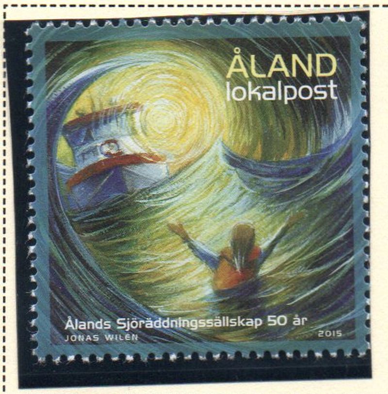 Aland ( Finland ) Scott Catalogue number 376 2015 50th Anniversary Sea Rescue Society stamp .
