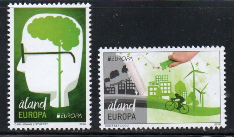 Aland ( Finland ) Scott Catalogue number 381-382 2016 Europa, Think, stamp set .Mint, fine to very fine, original gum never hinged.Member Canadian Stamp Dealers Association .