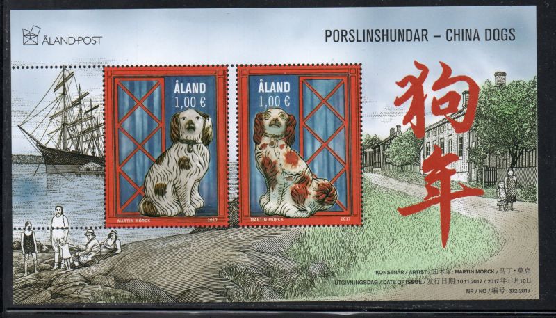 Aland ( Finland ) Scott Catalogue number 402 2017 Year of the Dog, Porcelain Dogs, stamp souvenir sheet.
