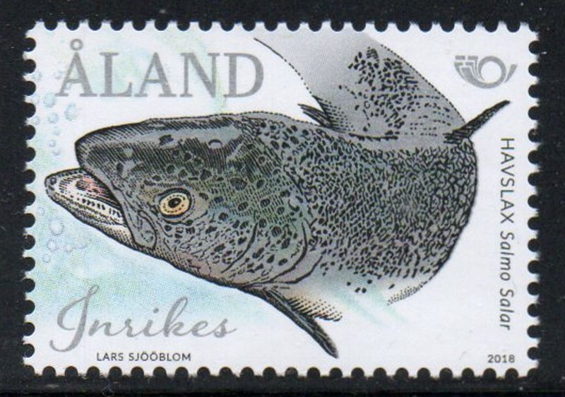 Aland ( Finland ) Scott Catalogue number 405 2018 Fish stamp .Mint, fine to very fine, original gum never hinged.Member Canadian Stamp Dealers Association .