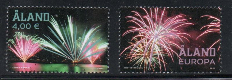 Aland ( Finland ) Scott Catalogue number 410-411 2018 Fireworks stamp set .Mint, fine to very fine, original gum never hinged.Member Canadian Stamp Dealers Association .