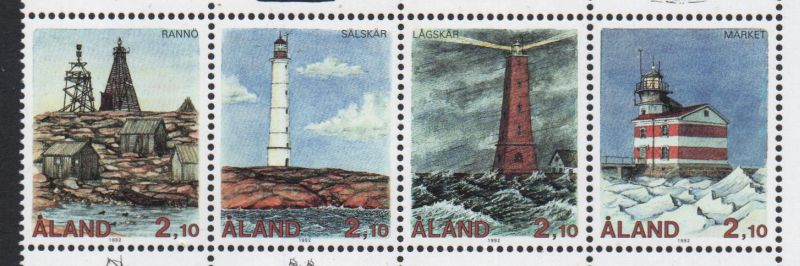 Aland ( Finland) Scott Catalogue number 64-67 1992 Lighthouses stamp set .Mint, fine to very fine, original gum never hinged . Member Canadian Stamp Dealers Association . Canadian Customers - I pay the GST/HST on your purchases from me .