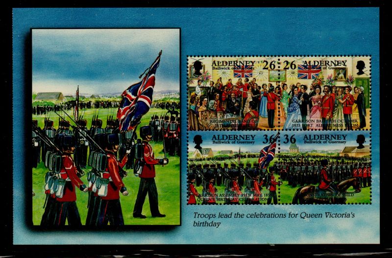 Alderney Scott Catalogue number 160b 2000 26p & 36p Garrison Island stamp booklet pane of 4 Troops Marching on selvedge .