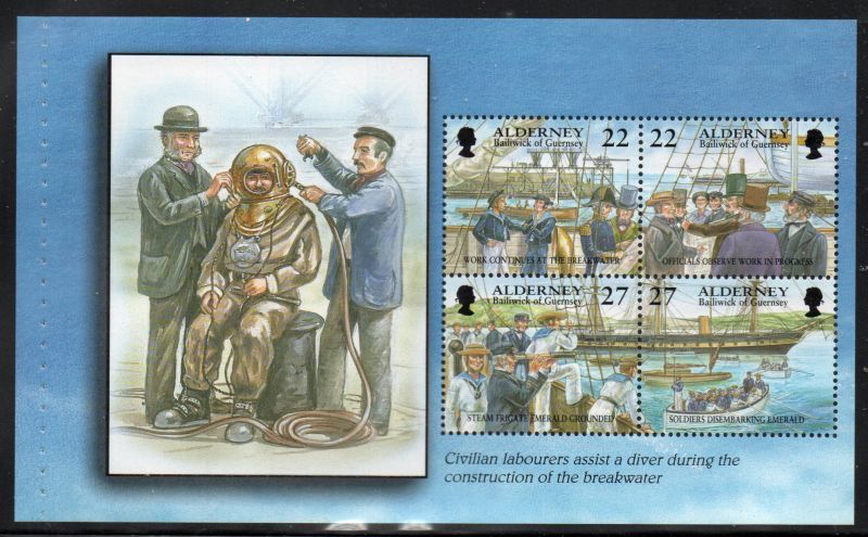 Alderney Scott Catalogue number 179b 2000 27p & 40p Garrison Island stamp booklet pane of 4 Diver on selvedge