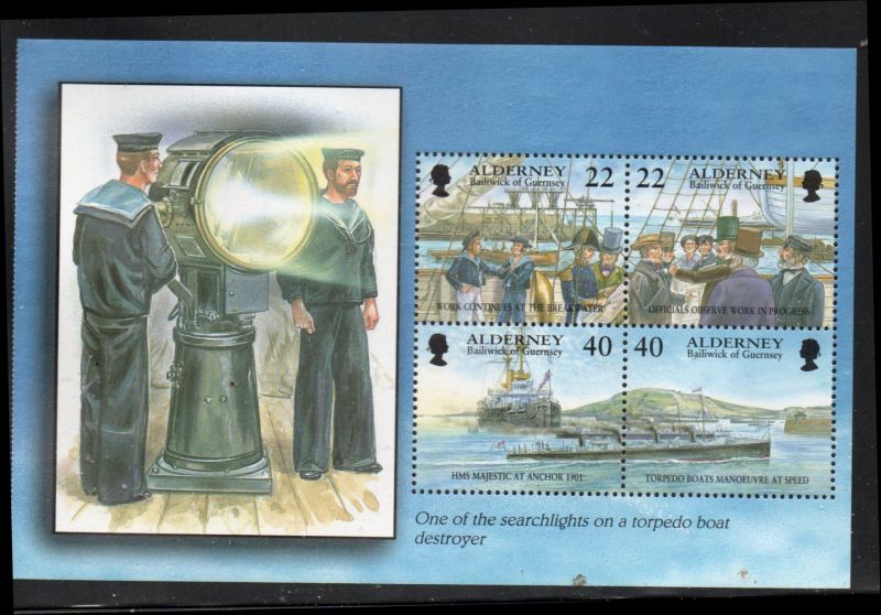Alderney Scott Catalogue number 183b 2000 22p & 40p Garrison Island stamp booklet pane of 4 Searchlight on selvedge.