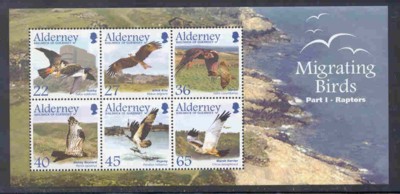 Alderney Scott Catalogue number 190a 2002 Birds, Raptors, stamp souvenir sheetMint, fine to very fine original gum never hinged .Canadian Customers - I pay the GST/HST on your purchases from me
