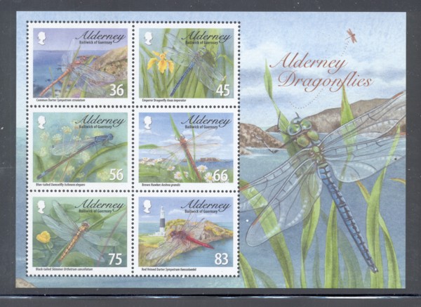 Alderney Scott Catalogue number 3667a 2010 Dragonflies stamp souvenir sheet .