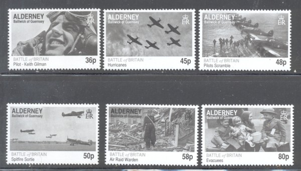 Alderney Scott Catalogue number 369-374 2010 70th Anniversary Battle of Britain stamp set .