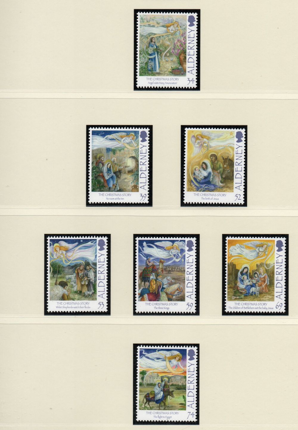 Alderney Scott Catalogue number 452-458 2012 Christmas stamp set .Mint, fine to very fine original gum never hinged .Canadian Customers - I pay the GST/HST on your purchases from me
