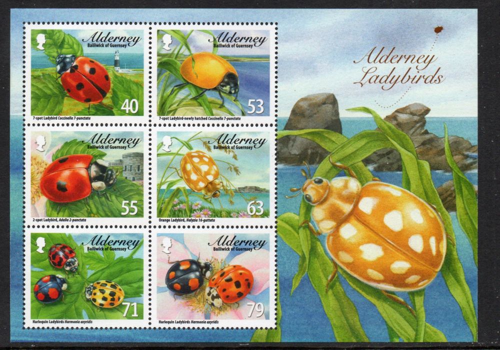 Alderney Scott Catalogue number 489a 2014 Ladybugs stamp souvenir sheet .Mint, fine to very fine original gum never hinged .Canadian Customers - I pay the GST/HST on your purchases from me