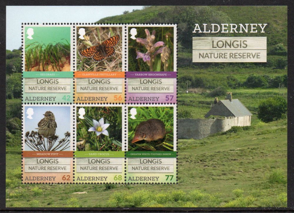 Alderney Scott Catalogue number 545a 2016 Longis Nature Reserve stamp souvenir sheet.Mint, fine to very fine original gum never hinged .Canadian Customers - I pay the GST/HST on your purchases from me