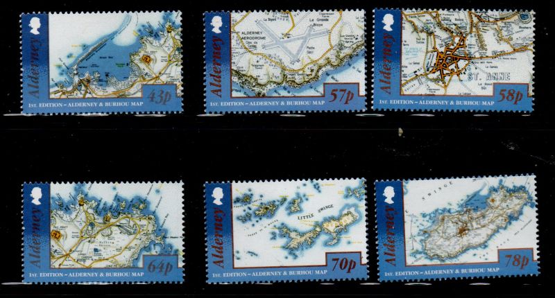 Alderney Scott Catalogue number 565-570 2017 Maps stamp set .Mint, fine to very fine original gum never hinged .Canadian Customers - I pay the GST/HST on your purchases from me
