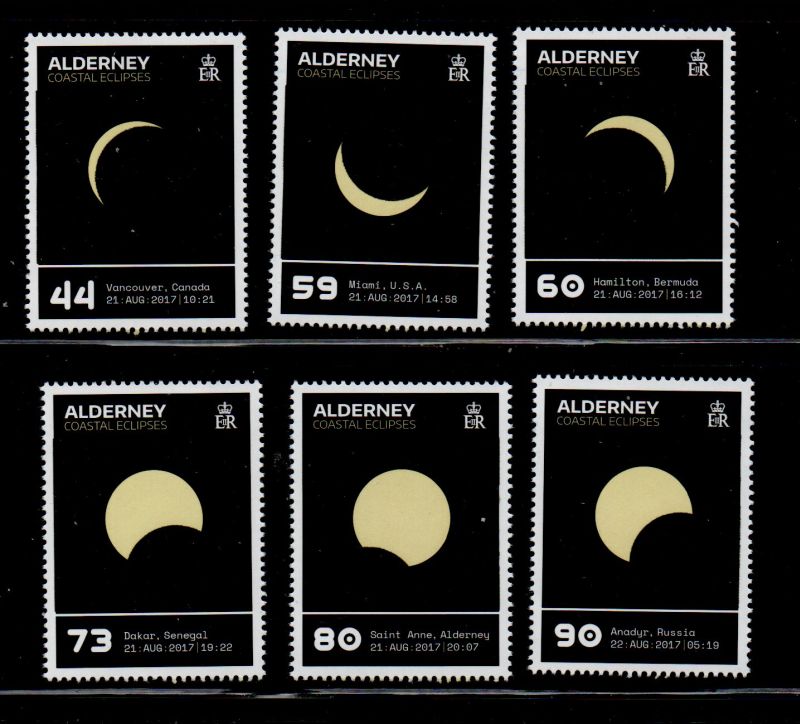 Alderney Scott Catalogue number 578-583 Solar Eclipse stamp set.Mint, fine to very fine original gum never hinged .Canadian Customers - I pay the GST/HST on your purchases from me