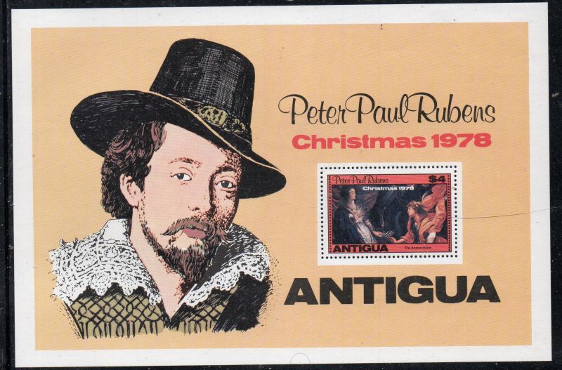 Antigua Scott Catalogue number 527 1978 Christmas stamp souvenir sheet .Mint, fine to very fine original gum never hinged ,Member Canadian Stamp Dealers Association .Canadian Customers - I pay the GST/HST on your purchases from me