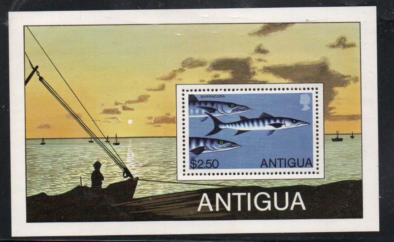 Antigua Scott Catalogue number 546 1978 Barracuda stamp souvenir sheet .Mint, fine to very fine original gum never hinged ,Member Canadian Stamp Dealers Association .Canadian Customers - I pay the GST/HST on your purchases from me