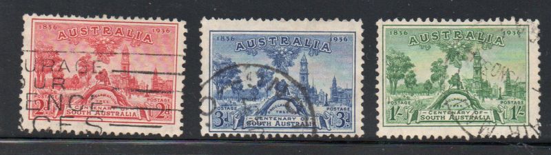 Australia Scott Catalogue number 159-161 1936 South Australia Anniversary stamp set .Used, fine to very fine ..Canadian Customers - I pay the GST/HST on your purchases from me .21-8-130.jpg