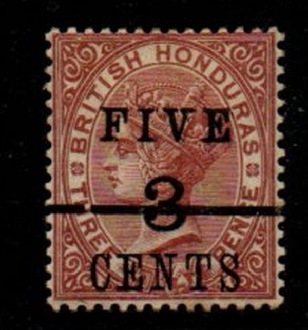 British Honduras Scott Catalogue number 35 1891 5 cent on 3 cent on 3d brown Victoria stamp.Mnt, very good to fine original gum hinged .Canadian Customers - I pay the GST/HST for you
