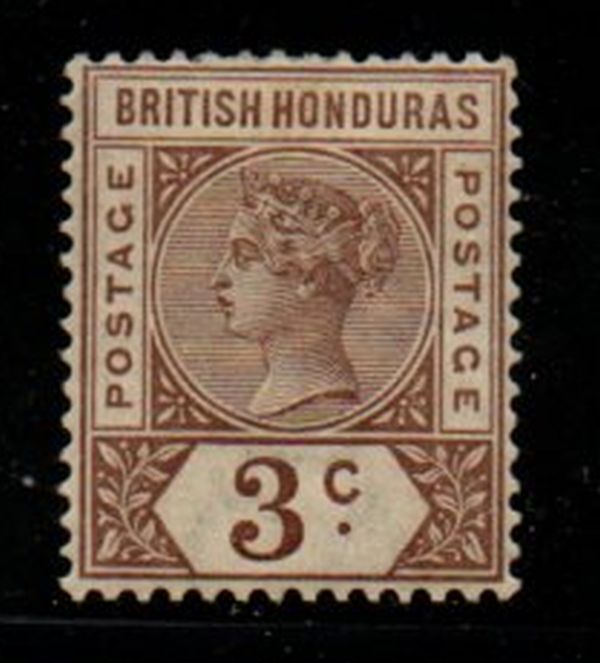 British Honduras Scott Catalogue number 40 1891 3 cent brown Victoria stamp.Mnt, very good to fine original gum hinged .Canadian Customers - I pay the GST/HST for you20-1-39.jpg