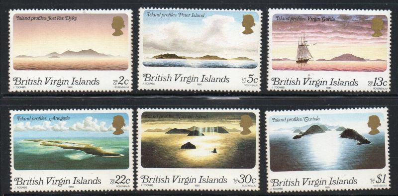 British Virgin Islands Scott Catalogue number 395-400 1980 Jost van Dyke stamp set .