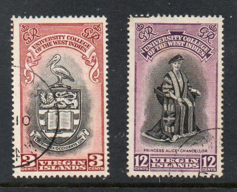British Virgin Islands Scott Catalogue number 95-96 1951 West Indies University stamp set .Used, fine to very fineCanadian Customers - No added GST/HST on your purchases from me .26-1-11.jpg