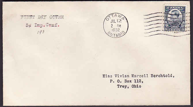 Scan #10935 - 5c KGV Ottawa Conference on FDC [#193] - Carlton County - Ottawa, Ont - Ju1 12 1932 -