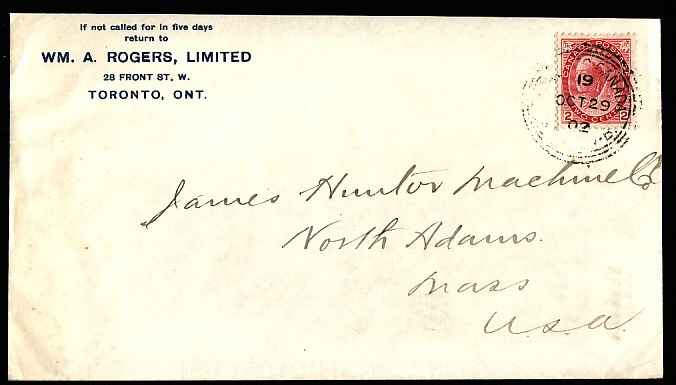Scan #11431 - 2c Numeral - York County - Toronto, Ont 3 ring circle - Oct 29 1902 -- CC "Wm A Rogers, Limited" -