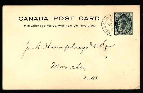 Scan #13088 - 1c Leaf postal stationery - Halifax & St John RPO [MT 165 RF B] - W No 12 1901 -