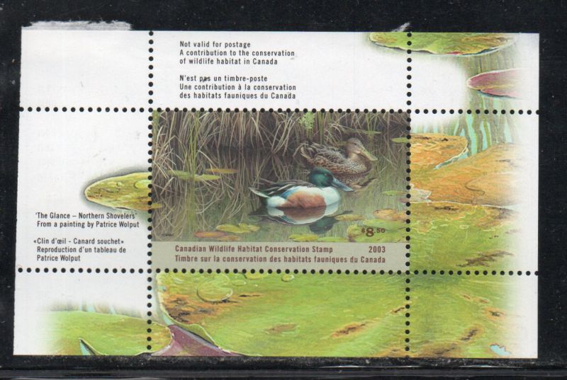 Canada van Dam Catalogue number FWH19 2003 Wildlife Habitat Conservation $8.50 Northern Shoveler Duck stamp