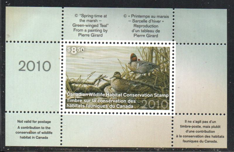 Canada 2010 Green-winged Teal Conservation stamp unused van Dam FWH27