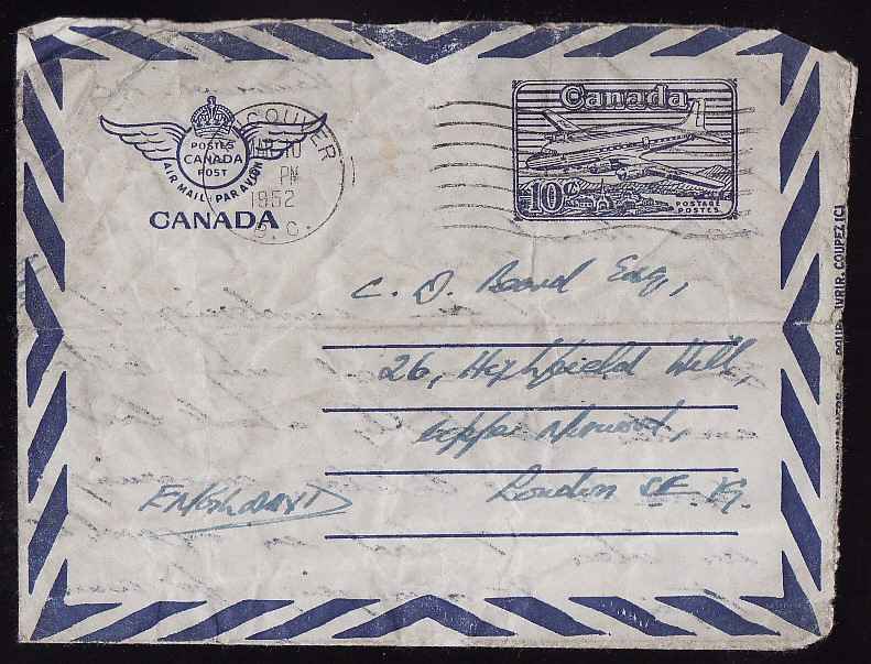 #8751-10c Air Letter sheet [ A13]-England-Vancouver,BC-Mar 10 1952- Member of the Canadian Stamp Dealers Association and have been serving the collector since 1975.Canadian buyers - I will cover your GST/HST costs .