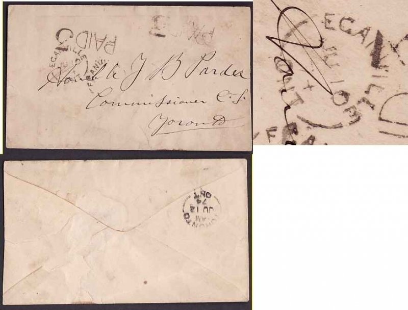 #9323 - Stampless-Renfrew County-Eganville , Ont single broken circle - Ju 10 1874 - rated "PAID 3"