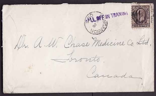 #9541 - 2c KGV medallion + 1c ? [ stamp fell off ]-Huron County-Dungannon,Ont-De 28 , 1935 - H/S "Fell Off in Transit"-