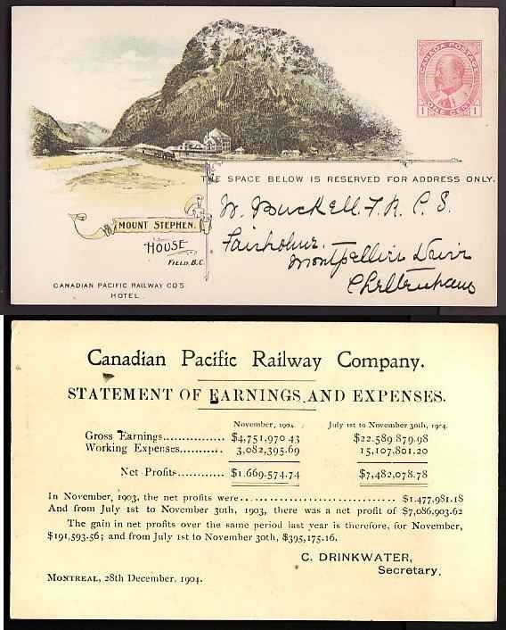 #10007 - 1c Edward-Mount Stephen House-(CPR 41B)-addressed but unused Member of the Canadian Stamp Dealers Association and have been serving the collector since 1975.Canadian buyers - I will cover your GST/HST costs .