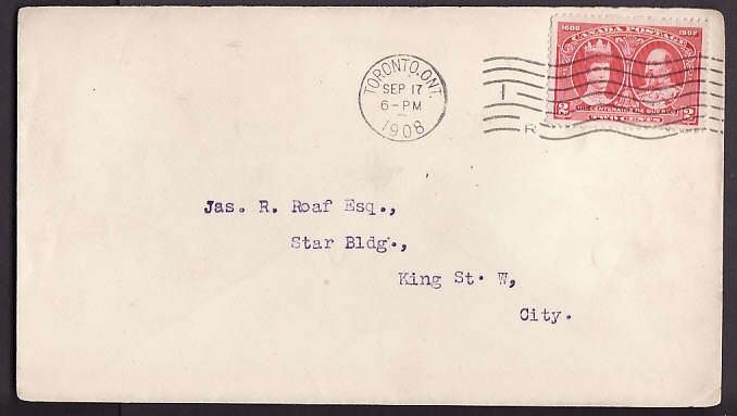 #10072 - 2c Tercentenary-York Cnty-Toronto , Ont - Sep 17 1908 Member of the Canadian Stamp Dealers Association and have been serving the collector since 1975.Canadian buyers - I will cover your GST/HST costs .