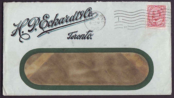 #10129-2c Edward-early use of window envelope-York Cnty-Toronto,Ont-Jul 4 1910- CC "HP Eckardt & Co" Member of the Canadian Stamp Dealers Association and have been serving the collector since 1975.Canadian buyers - I will cover your GST/HST costs .