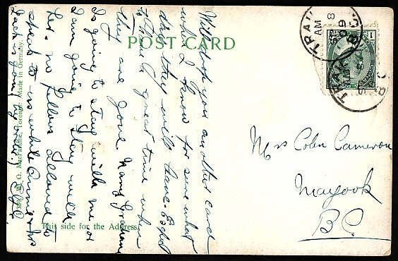 #10215-1c Edward on post card-Trail , BC cds - Sp 8 1909