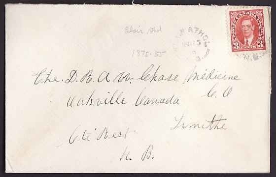 #10235 - 3c KGVI mufti - Blair Athol, NB single broken circle - Jan 23 1939 -Member of the Canadian Stamp Dealers Association and have been serving the collector since 1975.Canadian buyers - I will cover your GST/HST costs .