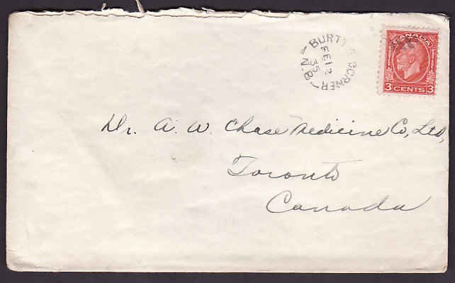 #10236-3c KGV medallion-Burtt's Corner, NB single broken circle - Jan 31 1932 Member of the Canadian Stamp Dealers Association and have been serving the collector since 1975.Canadian buyers - I will cover your GST/HST costs .