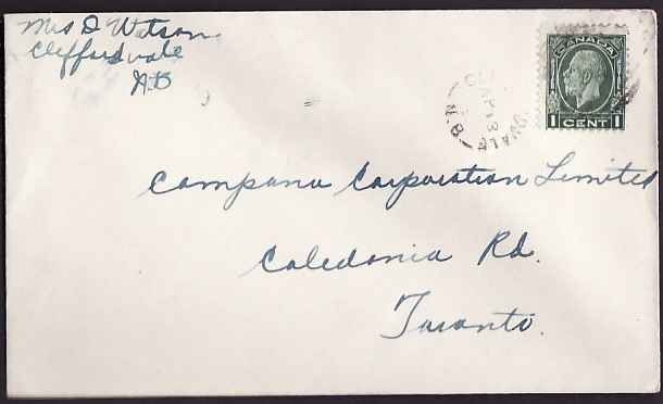 #10238 - 1c KGV medallion - Cliffordvale, NB single broken circle - Ap 18 193? Member of the Canadian Stamp Dealers Association and have been serving the collector since 1975.Canadian buyers - I will cover your GST/HST costs .