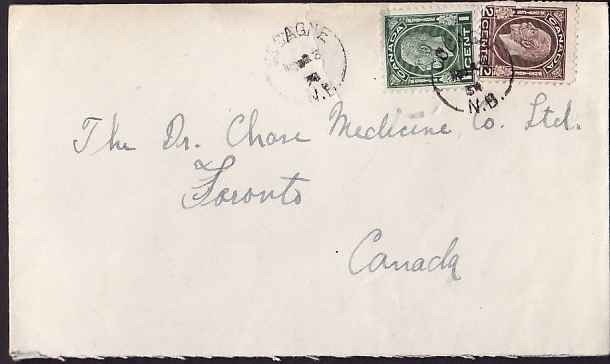 #10239 - 1c + 2c KGV medallion - Cocagne, NB single broken circle - Nov 23 1934 -Member of the Canadian Stamp Dealers Association and have been serving the collector since 1975.Canadian buyers - I will cover your GST/HST costs .