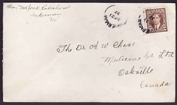 #10251 - 2c KGVI mufti - Inkerman, NB single broken circle - Sp 21 1937 Member of the Canadian Stamp Dealers Association and have been serving the collector since 1975.Canadian buyers - I will cover your GST/HST costs .