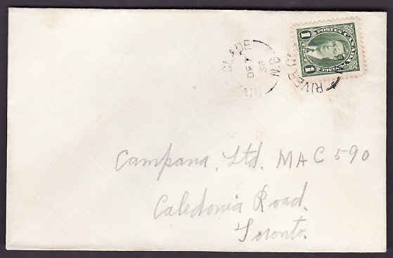 #10287 - 1c KGVI mufti - River Glade, NB single broken circle - De 7 1938Member of the Canadian Stamp Dealers Association and have been serving the collector since 1975.Canadian buyers - I will cover your GST/HST costs .Â